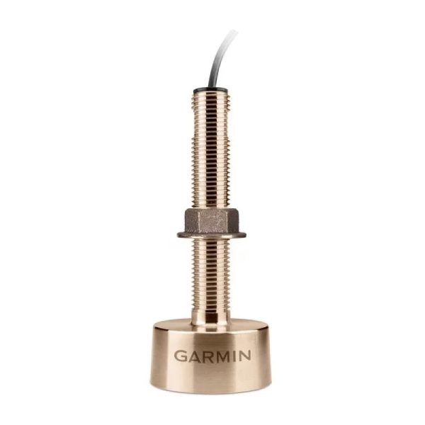 The 8-pin transducer features mid band CHIRP traditional sonar (85-165 kHz) and has a power rating of 600 W. The bronze thru-hull housing and stem makes it ideal for wooden fishing boats.