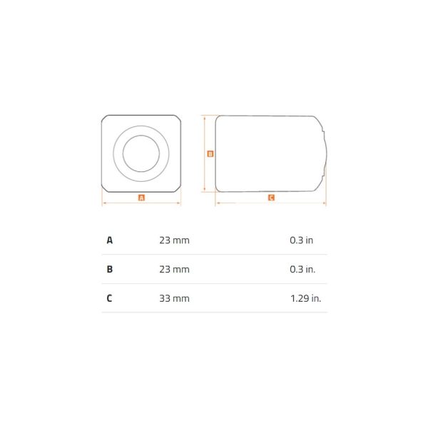 - Size: 23 x 23 x 33mm (0.3″ x 0.3″ x 1.29″)