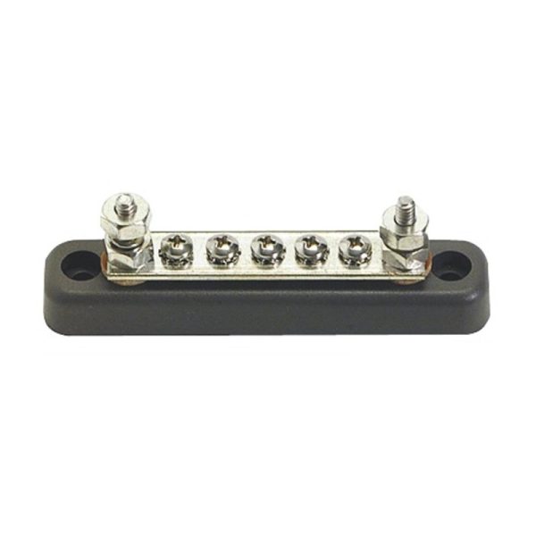 High insulating capacity plastic base; nickel-plated cooper support bar, stainless steel screws and nuts. Volt 12/48.
