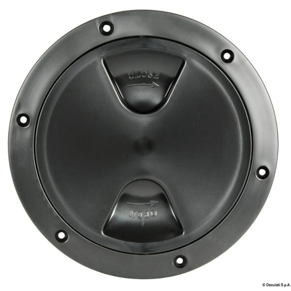 Black polypropylene inspection hatch. Screw locking 100% watertight with rubber O-ring.