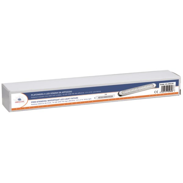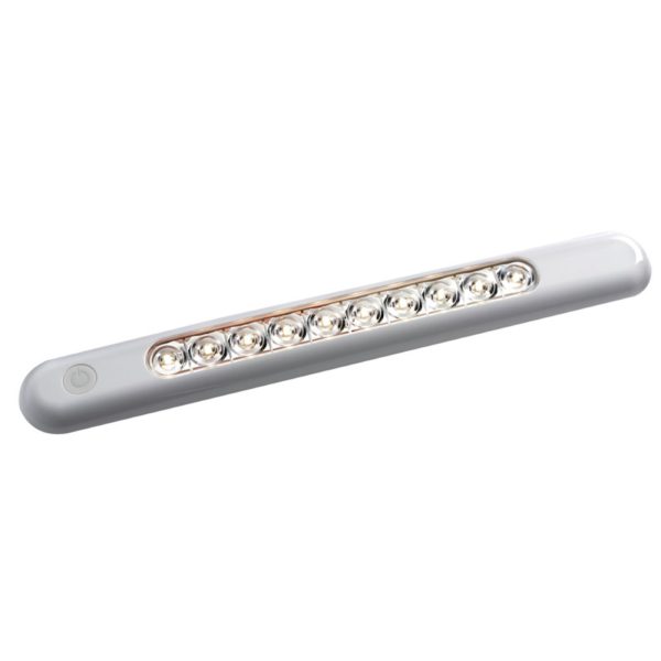 Free standing watertight LED light fixture with integrated switch and 10 x SMD-HD high-effieciency LED’s. White flat base body ideal for engine compartments, bathrooms, kitchens, under boom on sailing boats, etc.