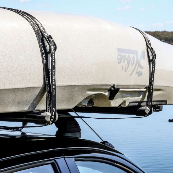 A pair high quality 15′ x 1″ (4.6m x 25mm) tie-downs to easily secure kayaks, SUP’s, surfboards, dinghies, and more to roof racks and trailers.