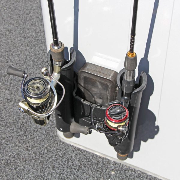 The RodStow Double is available in black or white, comes with stainless steel fasteners and can be installed in minutes. It features a storage caddy for lures, traces and other tackle, it’s even big enough to hold a small tackle box. These rod holders have a removable gimbal pin that you can leave in to support the rod and stop rotation, or remove to let the rod pass through.