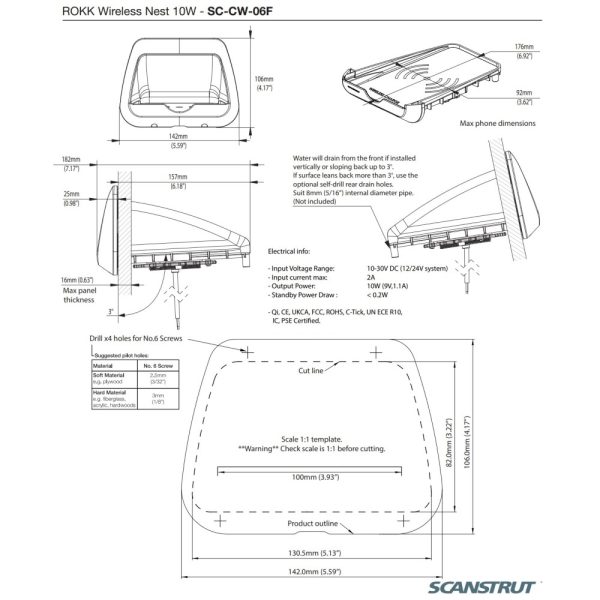 ROKK Wireless – Nest 10W Waterproof Phone Charging Pocket 12/24V