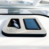 Engineered to bond underneath & wirelessly charge through all non-metallic materials; GRP, fabric, leather, wood, carbon fiber, and all leading marine traction products, e.g SeaDek and MarineMat. The result is wireless phone charging capabilities with your finished aesthetic. The IPX6 waterproof 12/24V Qi certified waterproof wireless charging range enables wireless charging for the outdoor environment, without the need for phone charging cables.