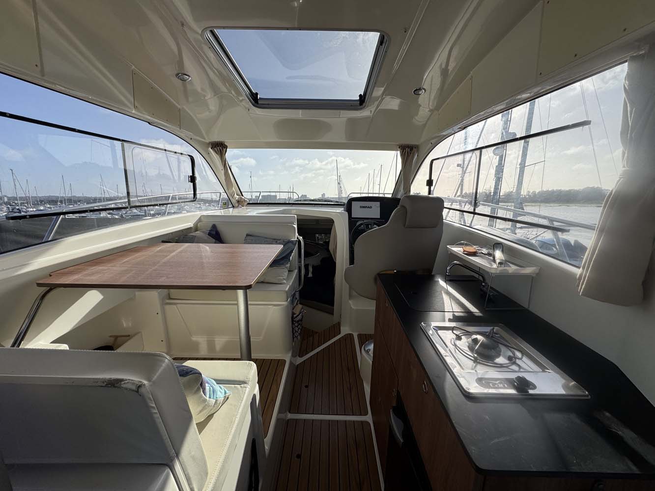 – Saloon area located to Port side, fitted with large bench seats with a table in between